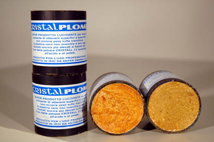 Super prodotto lucidante per marmi e terrazzo,consente di ottenere superfici a specchio. Di molto superiore al 5EXTRA E’ composto da ben 9 componenti chimici bilanciati tra di loro,prima di lucidare è sufficiente levigare la superficie al la grana 400,di più non serve. Risultati ancora più elevati si hanno con l’uso della polvere CRISTAL 11 superiore allo acido ossalico ed all’ossido di stagno,non occorre peso sul macchinario in lavorazione,prodotto di grande durata,con 3 CRISTAL PLOMB è possibile lucidare fino a 350 mq di superfici,può essere prodotto in svariate forme come indicato dalle foto qui sopra partendo da quella cilindrica di uso universale,la plastica nera che li contiene non riga assolutamente la superficie.